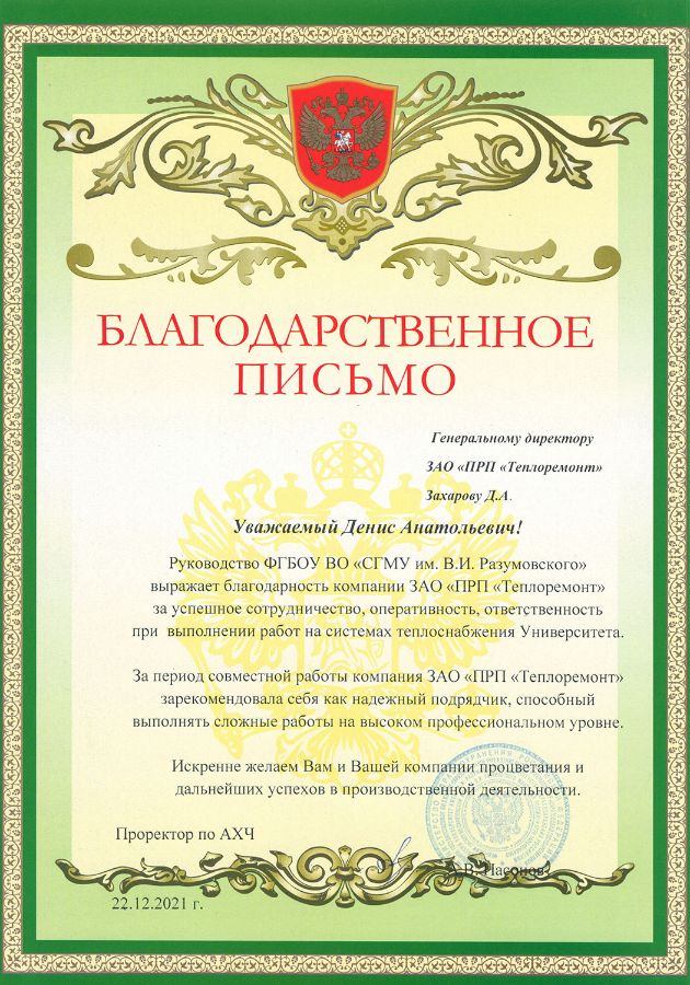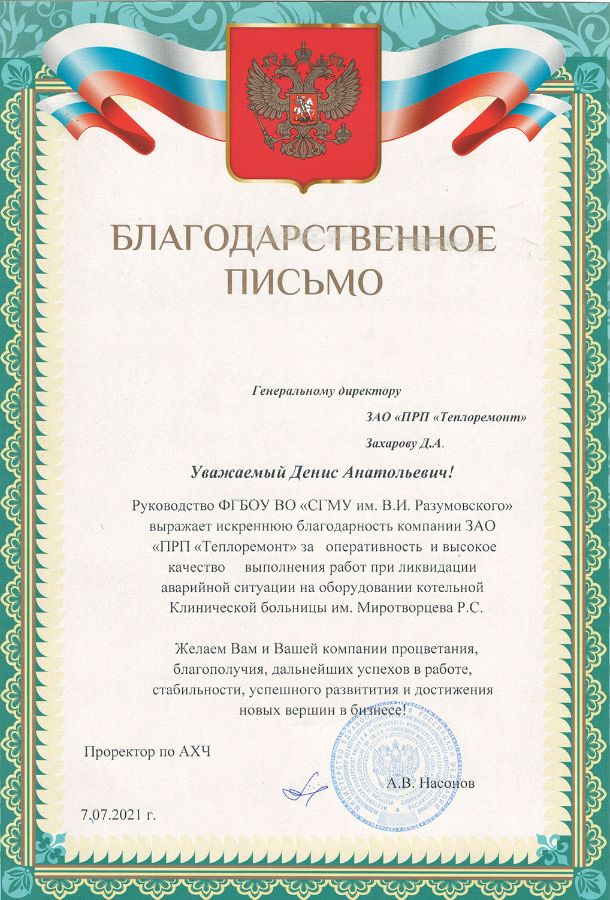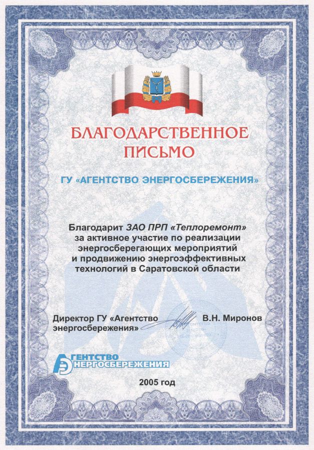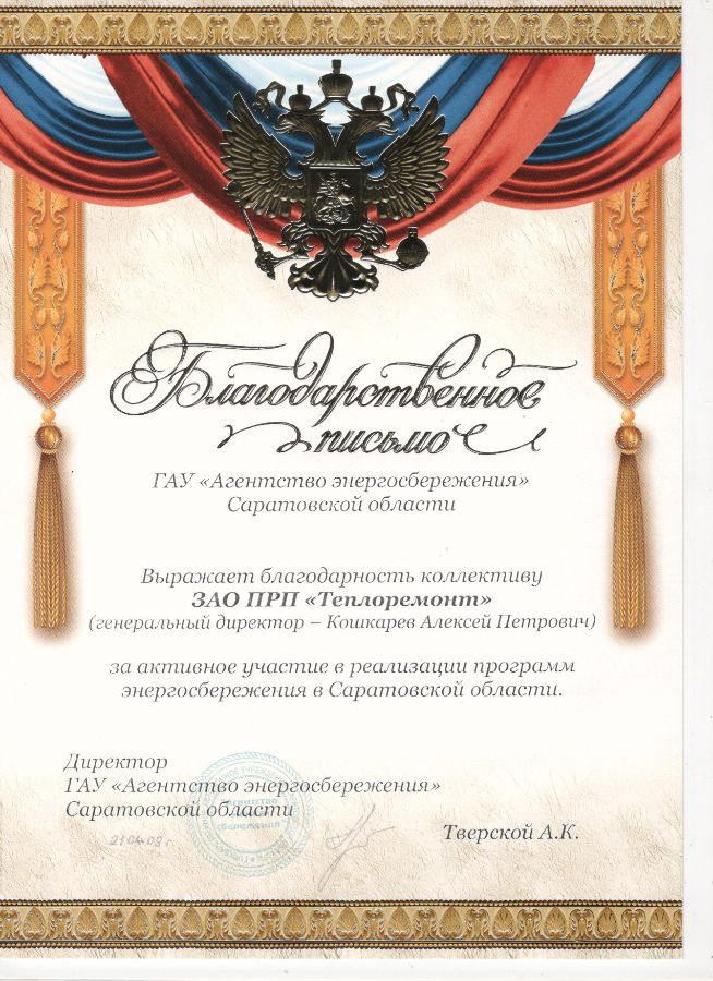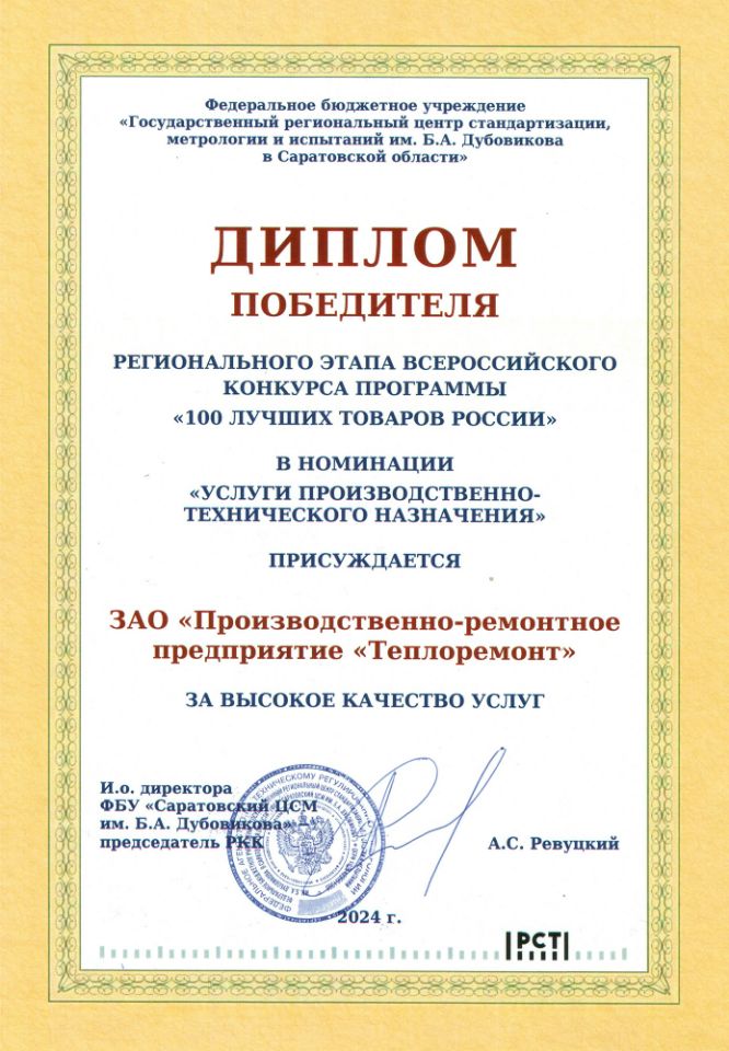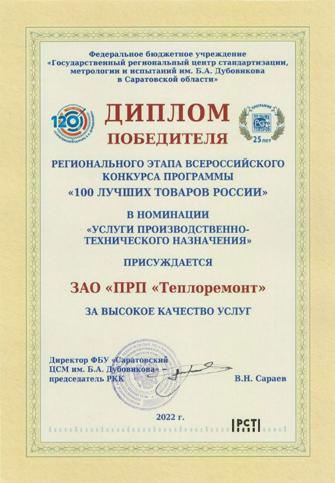 ЗАО ПРП Теплоремонт включено в реестр квалифицированных подрядных организаций Министерства строительства и жилищно-комунального хозяйства Саратовской области