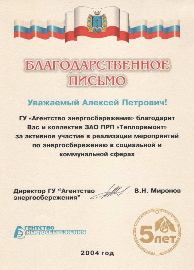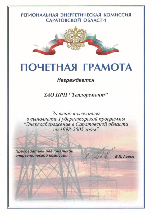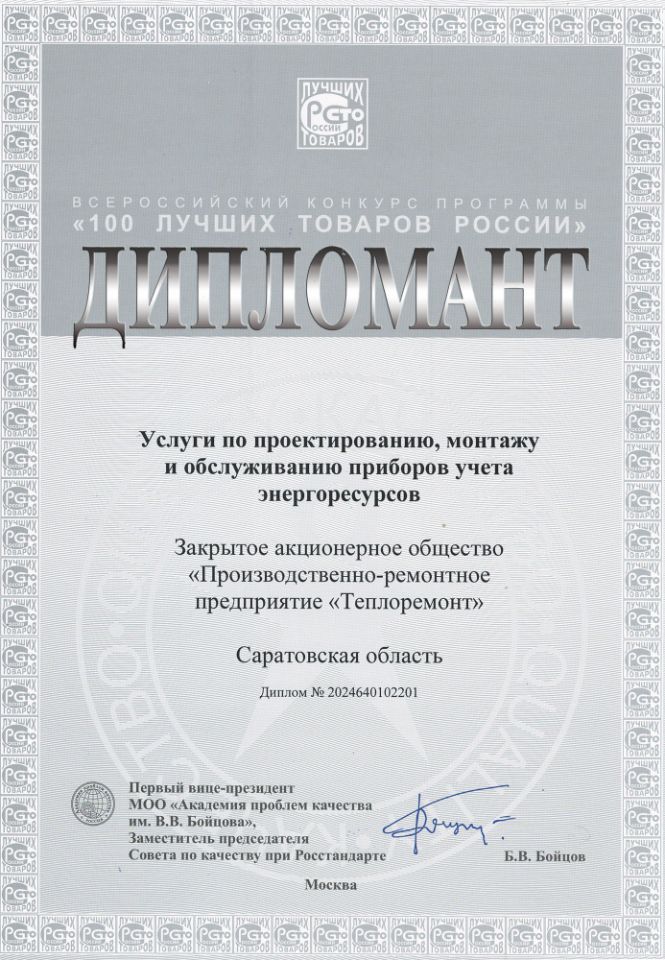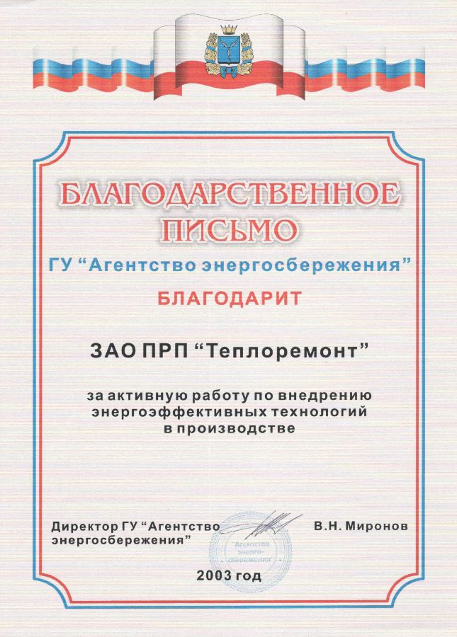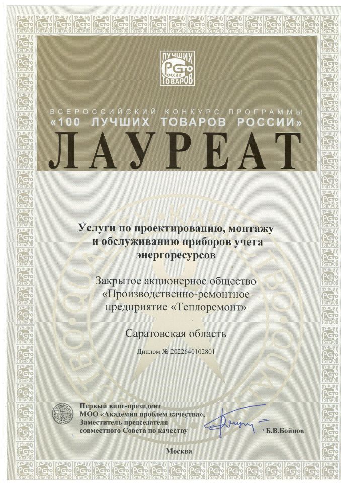 За время работы нами было установлено свыше 1000 комплектов приборов учета тепла. В 2001 году, 2003-2005 годах, ЗАО "ПРП "Теплоремонт" было награждено почетными грамотами за участие в программах по установке приборов учета тепла в социальной сфере по линии ГУ "Агентство энергосбережения", а 2013 году получило почетное звание «Лидер отрасли».